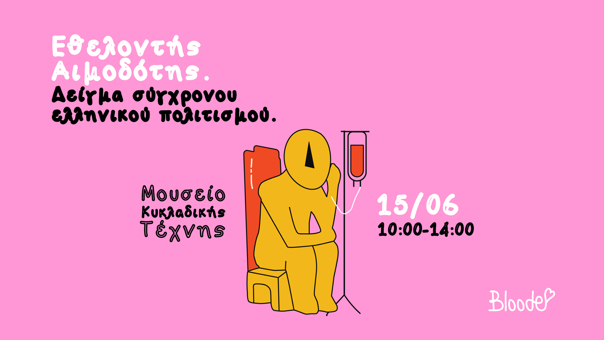 Με κεντρικό μήνυμα «Εθελοντής Αιμοδότης. Δείγμα σύγχρονου ελληνικού πολιτισμού» η Bloode μάς καλεί στις 15 Ιουνίου, 10:00-14:00, να πάρουμε μέρος στην εθελοντική αιμοδοσία αλλά και τις παράλληλες δράσεις που θα γίνουν σε χώρους του Μουσείου.