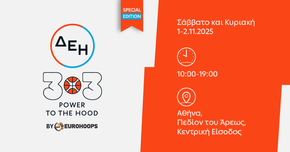 Το ΔΕΗ 3×3 POWER TO THE HOOD by Eurohoops, η μεγάλη γιορτή του street basket ολοκληρώνεται για το 2025 με ένα μοναδικό Special Edition στο Πεδίον του Άρεως, το Σαββατοκύριακο 1 και 2 Νοεμβρίου.